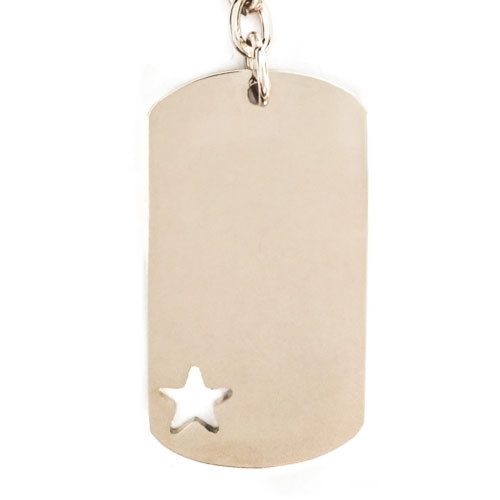 Metalinis blizgus raktų pakabukas ID pakabuko formos. Galima graviruoti iš abiejų pakabuko pusių.
