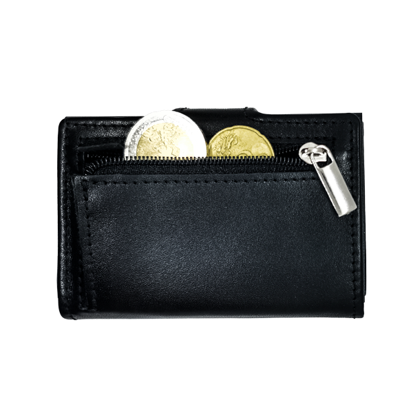 Ši unikali, patentuoto dizaino, piniginė turi 3 atskirus skyrius:
